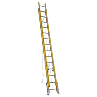 The D7100-2LV series extension ladders boast a duty rating of 375 pounds and have factory-installed LeveLok levelers to enable the ladders to adapt to uneven terrain. With simple foot action, each leveler can extend up to 10" in 3/16" increments. These ladders are ideal for utility or telecommunication industries. The external guides at the top of the base section secure the interlocking rails. The top of the fly section has pre-pierced holes for easy installation of accessories. The base and fly sections easily separate to use the base section as a single ladder. Fiberglass rails are non-conductive for working near electricity. (36' & 40' do not have interlocking rails).