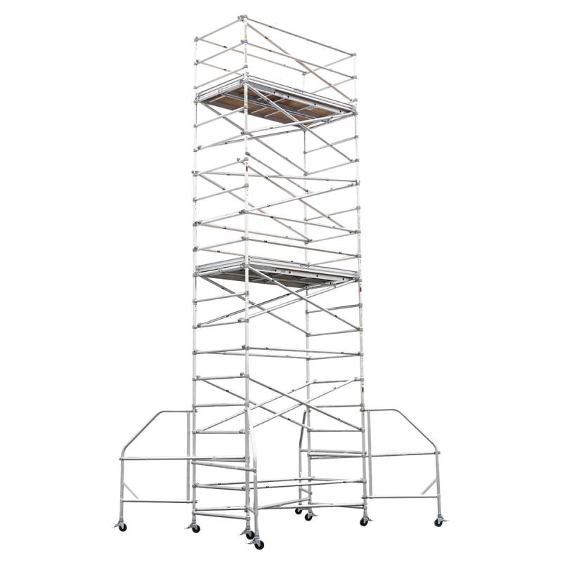 The 4200-23 series aluminum scaffold towers offer 6', 8', or 10' length platforms that are 29" wide, and 23' maximum platform height. Load capacity is 25 lbs. per square foot or 500 lbs. maximum per deck and 1,000 lbs. maximum per scaffold. Additional Werner scaffold sections and components can be added to the tower for maximum flexibility.