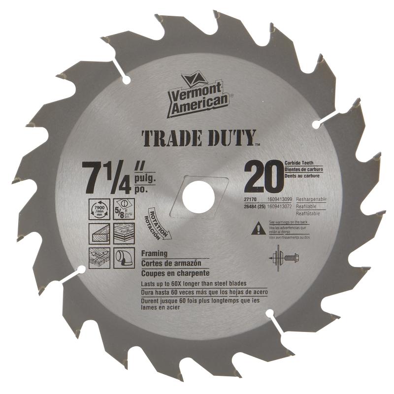 7-1/4 In. 20 Tooth Trade Duty™ Series Carbide Tipped Circular Saw Blade