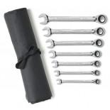 7 Pieces Reversible Combination Ratcheting Wrench Set Roll SAE