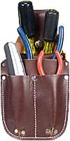 Compact 4 pocket tool organizer fits in your pocket protecting you, your tools, and your clothes. Ideal for small repair work, shop workers, gardeners, farm repair, and cabinetmakers. Create an instant mini tool carrier, organizing pliers, screwdrivers, and other tools while keeping them within easy reach. Handy snap loop hooks around up to a 2" belt, if desired.