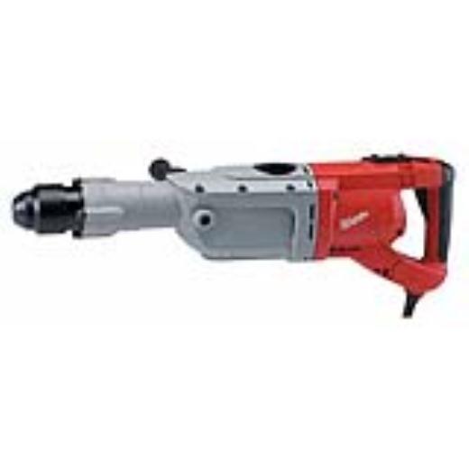 Large electric hammer used for drilling large holes or breaking concrete and asphalt, bushing, driving ground rods, scraping floors, digging, and tamping. This heavy-duty tool has an in-line design which provides more comfortable use when working on floors. An excellent system of vibration absorption/reduction reduces operator fatigue. The side handle can be attached to the rear switch handle which minimizes bending over. Other features include a service reminder light, soft-grip handles, and easy access for maintenance. The SDS-max bit holder system allows chisels to be positioned most efficiently in relationship to the work.