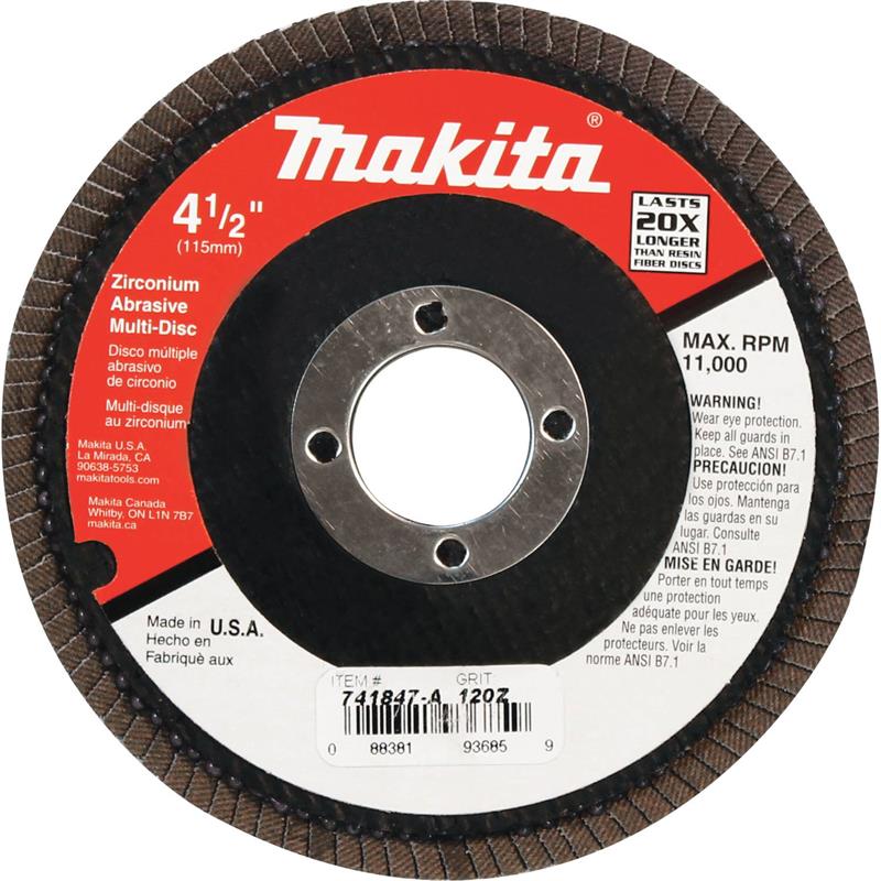 Makita 4-1/2" Abrasive Multi-Disc is designed to work with Angle Grinders for material removal and surface preparation. The Zirconium abrasive grain runs cooler and lasts longer than aluminium oxide. These wheels work on a variety of materials including metal, wood and plastic.