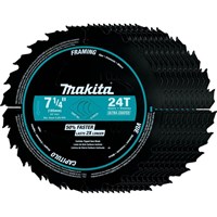 The Makita 7-1/4 in. 24T Ultra-Coated Framing Blade is ideal for a full range of wood cutting applications. The ultra-coated blade resists pitch build-up, and the high-grade fine-grain Tungsten Carbide tips are engineered for improved durability and longer blade life. Makita's exclusive "M"-shaped blade tooth has two cutting points, so it delivers the cutting speed of a 24-tooth blade, but with the finish of a 48-tooth blade.