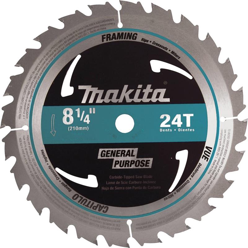 The Makita 8-1/4" Carbide-Tipped Circular Saw Blade has an efficient 24 tooth design, with a carbide tooth design for quality cuts and longer life. For use with Makita 5008MGA circular saw. Ideal for framing applications.