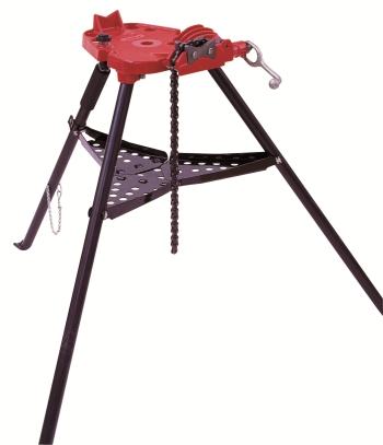 Reed Tripod Vises are among the strongest pipe vises available. Tripods are manufactured with heavy gauge steel, overlapping hinges, and the best adjustable tray clamp, not a set screw, to keep the lower tray assembly and entire portable workbench tight – even after many hours of use! The heavy-duty design permits use with pipe up to 6” diameter. Exclusive double-faced jaws provide a second set of jaws with options available for both metal and plastic pipe (R450P). R40+ features a 2 1/2” yoke vise on the same sturdy Tripod vise workbench. R470+ offers the same great features as Reed's R450+, but features a 60 percent larger top tray and a 45° cranking handle. Tripods fold into a compact shape, have a padded handle grip at the balance point, and boast the lightest weight for the easiest portability of all well-known tripods.